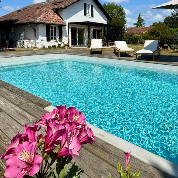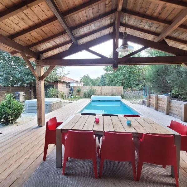 庭の景色を望むMaison landaise moderne avec piscine chauffée et spaは季節限定の屋外プール、共用ラウンジ、バーを提供する宿泊施設で、クーラン・ドゥシェ自然保護区まで約21kmです。この別荘では、専用プール、庭、バーベキュー施設、無料WiFi、無料専用駐車場を提供しています。