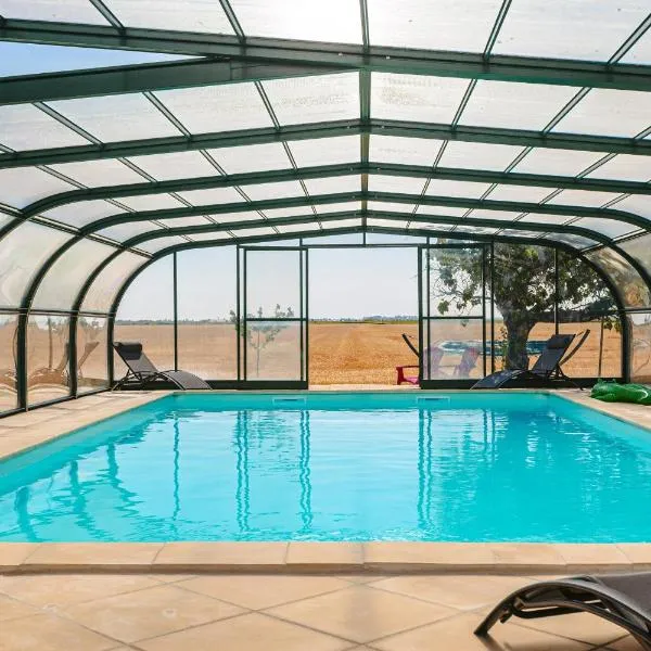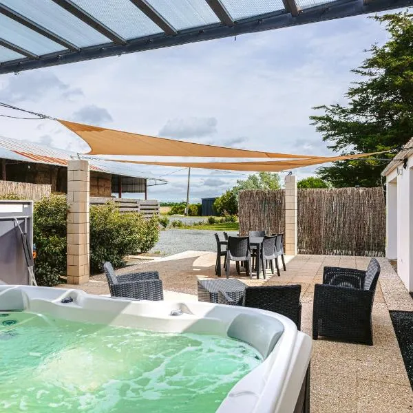 マランにあるGîtes Les 2 Fontainesはラ・ロシェル駅から27km、レスパス・アンカンから28kmで、プールの景色が望めます。無料WiFi付きのユニット、庭(屋外プール付)、ホットタブ、スパセンターを提供しています。敷地内の専用駐車場を提供しています。