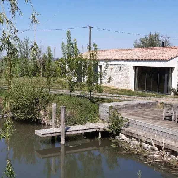La TailléeにあるMARAIS POITEVIN Charmant gîte 2 à 6 pers Vue imprenable sur la rivière calme absolu IDEAL pour familles couples voyageurs etcはラ・ロシェル駅から35km、パルク・エクスポ・ドゥ・ラ・ロシェールから35kmで、無料WiFi付きのユニット、エアコン、...