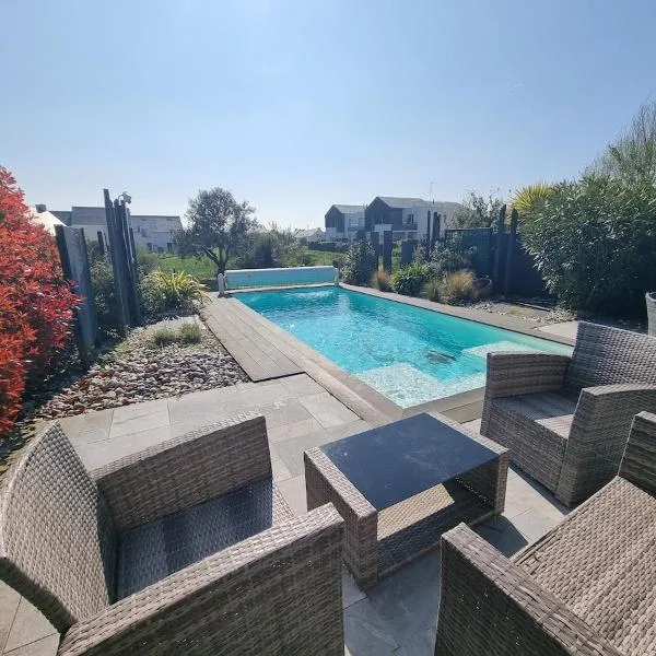 ピリアック・シュル・メールにあるà 700m du port de Piriac, maison neuve pour 7はテラスを提供する宿泊施設で、アトランティア・コンベンションセンター(ラ・ボール)まで19km、カジノ・バリエール・ラ・ボールまで19km、ラ・ボール・エスクブラック駅まで22kmです。サン・ミッシェルビーチから徒歩13分の宿泊施設で、庭と無料専用駐車場を提供しています。