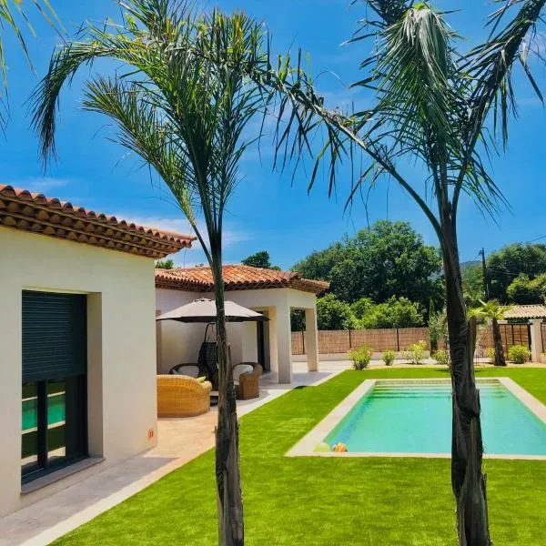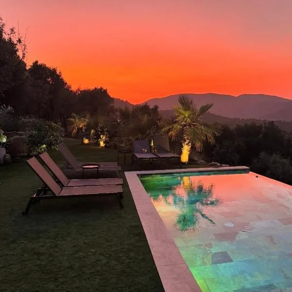 Bleu Indigo Piscine, Parking, Au calme se encuentra en La Garde-Freinet, a 10 km de Chateau de Grimaud, y ofrece alojamiento con terraza, wifi gratis y servicio de conserjería.