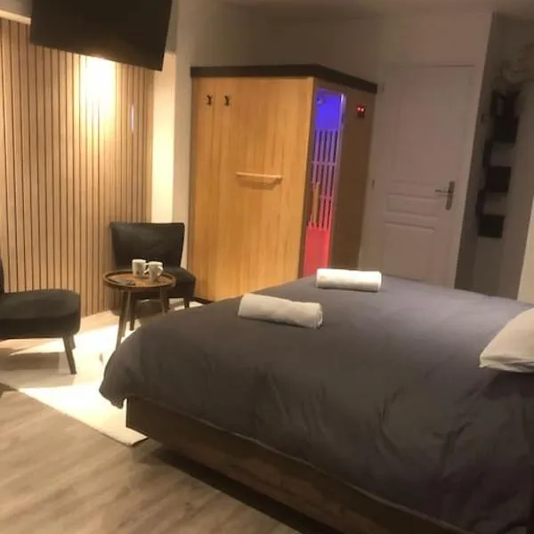 サン・ディジエにあるLoft privatif avec jacuzzi et saunaは、バーを提供しています。コンブロ・アン・バロワゴルフ場から24kmの宿泊施設で、テラスと無料専用駐車場を提供しています。 ベッドルーム1室、薄型テレビ、エアコンが備わるアパートメントです。このアパートメントにはタオルとベッドリネンを用意しています。