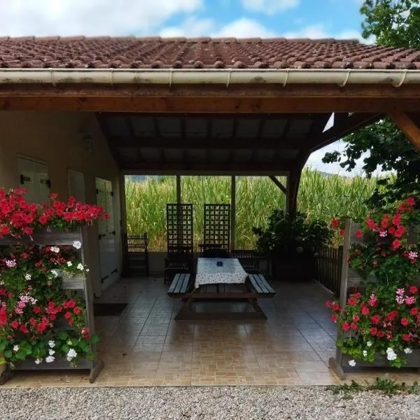 庭の景色を望むGITES SAINT ROMARYはSaint-Étienne-lès-Remiremontにある宿泊施設で、ジェラールメ湖から26km、エピナル駅から32kmです。この別荘からGérardmer Casinoまで27km、ヴォージュ広場まで31kmです。
