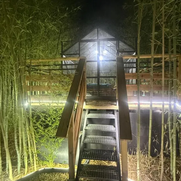 Perpignan IUT University - Carcassonne Campusからわずか9.2kmのTanabata logdeはPezensにある宿泊施設で、庭、テラス、共用キッチンを提供しています。敷地内の専用駐車場を提供しています。 キッチン(冷蔵庫、電子レンジ、コーヒーメーカー付)が備わるラグジュアリーテントです。バスルームにはシャワー、ヘアドライヤーが備わります。