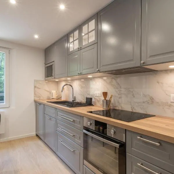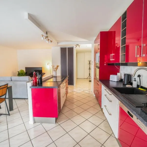 ネダンにあるLe Bohème Facilité pour Genève et Annecyは、バルコニーが備わるユニットを提供しています。この宿泊施設では、テラス、無料専用駐車場、無料WiFiを提供しています。 ベッドルーム1室、リビングルーム、設備の整ったキッチン(冷蔵庫、コーヒーメーカー付)、バスルーム(シャワー、ヘアドライヤー付)2室が備わるアパートメントです。