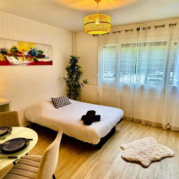 サン・ジュリアン・アン・ジュヌヴォワにあるSuper Studio à proximité de Genèveは無料WiFi付きのユニットを提供しており、コルナヴァン駅まで11km、ジェドー大噴水まで11km、サン・ピエール大聖堂まで11kmです。スタッド・ドゥ・ジュネーヴから7.6kmの宿泊施設で、テラスと無料専用駐車場を提供しています。