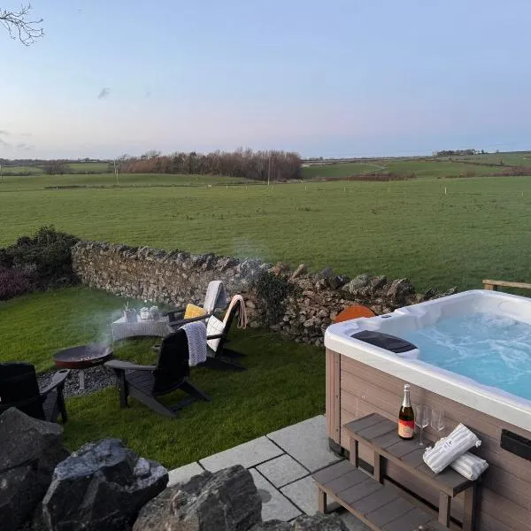 Dog Friendly Glamping Pods with Hot Tubs se encuentra en Dwyran y ofrece alojamiento con wifi gratis, vistas a la montaña y acceso a la bañera de hidromasaje.