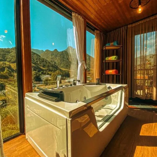 Paramount Kazbegi se encuentra en Kazbegi, a 47 km de Estadio Republican Spartak, y ofrece alojamiento con salón de uso común, parking privado gratis y terraza.