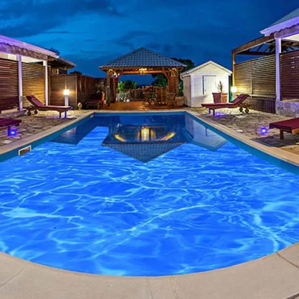 Anse-BertrandにあるGîtes Les Bienheureux - Piscine, Hamak, Terrasseは、屋外プールとテラスを提供しています。この別荘では、専用プール、庭、バーベキュー施設、無料WiFi、無料専用駐車場を提供しています。...