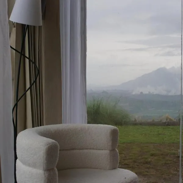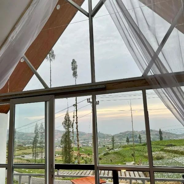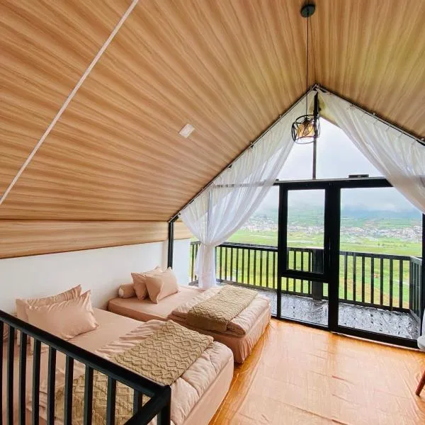 山の景色を望むHomestay Lingga Yoni DIENGは共用ラウンジとバルコニーを提供する宿泊施設で、ディエン高原まで約3.5kmです。この別荘では、無料専用駐車場、共用キッチン、無料WiFiを提供しています。 市街の景色を望むテラス、ベッドルーム3室、リビングルーム、薄型テレビ、設備の整ったキッチン(冷蔵庫、コンロ付)、バスルーム(シャワー付)2室が備わる別荘です。