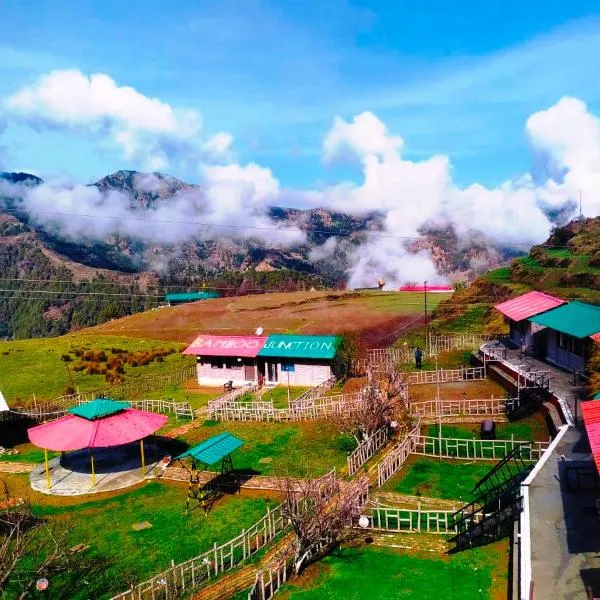 Located in Dhanaulti, 36 km from Gun Hill Point, Mussorie, Bamboo Junction Resort - Kanatal, Valley & Mountain View features a garden and views of the mountain.