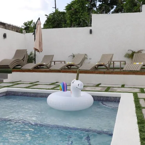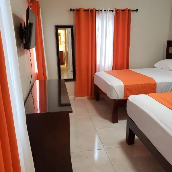 マホガニービーチから1km以内のPineapple Court Hotelはオーチョ・リオスにある宿泊施設で、屋外プール、無料専用駐車場、庭、共用ラウンジを提供しています。2つ星のホテルで、ツアーデスクと荷物預かりを提供しています。このホテルは無料WiFiと有料空港シャトルサービスも提供しています。 Pineapple Court Hotelではアラカルトの朝食を楽しめます。