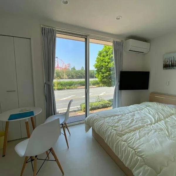 The land hotel L5は荒尾市にある宿泊施設で、旧細川刑部邸まで38km、熊本城まで39km、水前寺公園まで43kmです。平山温泉から25kmの場所にあるエアコン付きの宿泊施設で、無料WiFiと敷地内の専用駐車場を提供しています。 ベッドルーム1室、薄型テレビ、簡易キッチンが備わるアパートメントです。