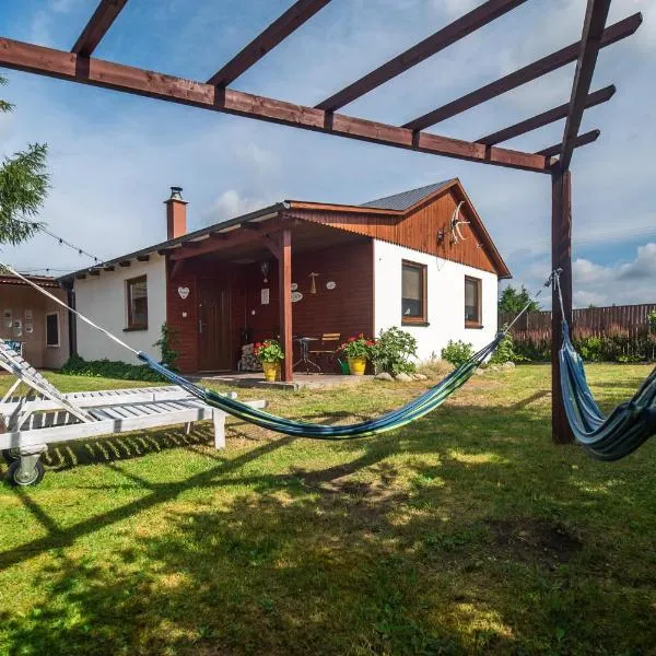PAKLADA Domek całoroczny 2, que tiene jardín y terraza, ofrece alojamiento en Karsin con wifi gratis y vistas al jardín.