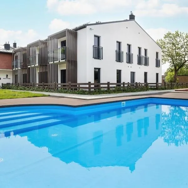 Blue Waves Apartament Trzęsacz z podgrzewanym basenem, que cuenta con piscina de temporada al aire libre, ofrece alojamiento en Trzęsacz con wifi gratis y vistas al jardín.
