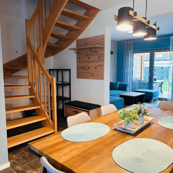 Domki Amare se encuentra en Pobierowo, a solo 11 min a pie de Playa de Pobierowo, y ofrece alojamiento con vistas al jardín, wifi gratis y parking privado gratis.