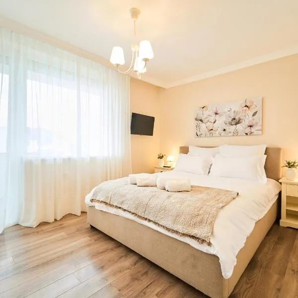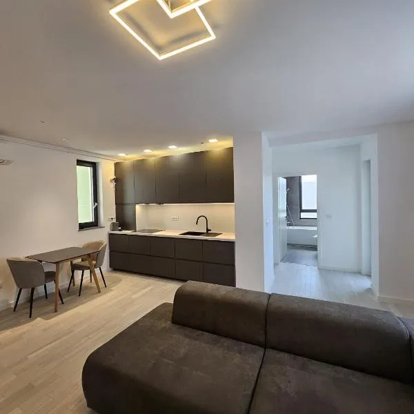 Alina's Deluxe Apartment and free private parkingはDumbrăviţaにあり、聖ジョージのローマカトリック教会まで6.8km、バナットビレッジ博物館まで7.1km、テレジア要塞まで7.4kmです。イウリュウス・モール・ティミショアラから6.4kmの場所にあるエアコン付きの宿泊施設で、無料WiFiと敷地内の専用駐車場を提供しています。