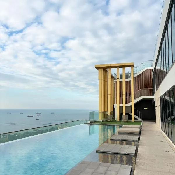 360 Seaview 2BR 15F Sriracha Beach by น้องมังคุด, que está en Ban Fang Daeng, tiene aire acondicionado y ofrece alojamiento con piscina privada, vistas al jardín y balcón.
