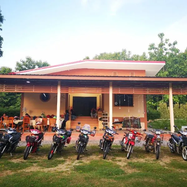 โรงแรมบ้านหมอบิวแก่งคุดคู้ se encuentra en Chiang Khan y ofrece alojamiento de 3 estrellas con bicicletas gratis, jardín y terraza. El hotel dispone de habitaciones familiares.