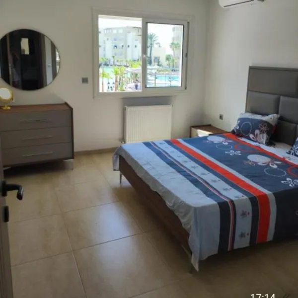 モナスティルにあるSuper appartement avec 5 piscines en résidenceは、市街の景色を望むユニット(無料WiFi利用可)、季節限定の屋外プール、庭、専用ビーチエリアを提供しています。このアパートメントには無料専用駐車場があり、周辺エリアではハイキング、フィッシング、サイクリングなどのアクティビティを楽しめます。