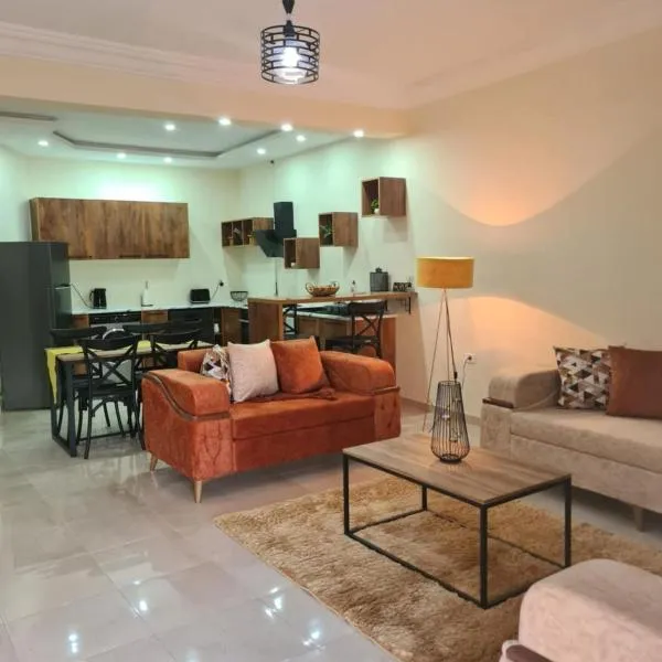 ゴルフ・パーム・リンクス・モナスティールからわずか5.2kmのA peaceful place in MonastirはSahlineにある宿泊施設で、季節限定の屋外プール、庭、テラス、無料WiFiを提供しています。このアパートメントでの滞在中は、設備の整ったキッチンとバルコニーを利用できます。 ベッドルームが1室あるアパートメントで、薄型テレビ、エアコン、リビングルームが備わります。