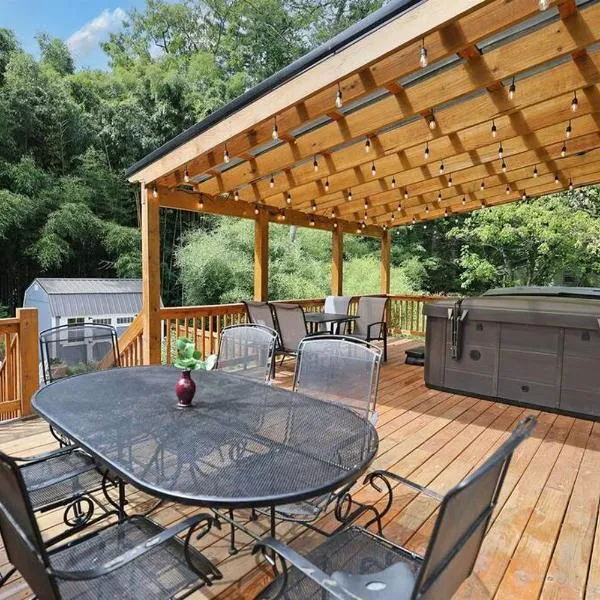 HOT TUB & PET-FRIENDLY Cabin in Cheshire Village, que cuenta con vistas a la montaña, dispone de alojamiento con balcón y hervidor, y está a unos 18 km de Folk Art Center.