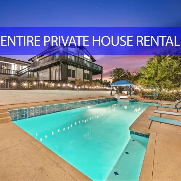 エルカホンにあるBackyard Oasis Private Villa Pool Hot Tubは、専用プール付きのユニットと無料WiFiを提供しています。パティオと屋外プールを提供しています。 独立したベッドルーム3室、リビングルーム、設備の整ったキッチン(冷蔵庫、食器洗い機付)、バスルーム2室が備わるエアコン付きの別荘です。この別荘にはタオルとベッドリネンを用意しています。