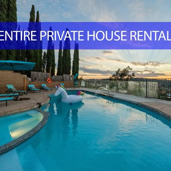 エルカホンにあるEntire Private Home with 4 Bedrooms 2 Bathrooms, Pool, View, 4 Parking, King Bed, Big Yard, Available Nowは屋外プールと24時間対応のフロントを提供しており、サンディエゴ動物園まで25km、サンディエゴ大学まで29kmです。