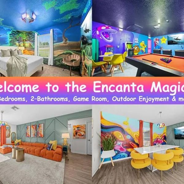 Located in Palm Bay, 12 km from Andretti Thrill Park and 14 km from Andy Semnick-Les Hall Baseball Field, Brand New Theme House w Game Room - Encanta Magical offers a garden and air conditioning.