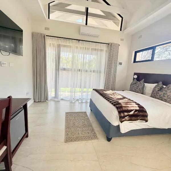 Mukuvisi Woodlandsから12kmのGletwyn Boutique Guesthouseはハラレにある宿泊施設で、屋外プール、無料専用駐車場、庭、共用ラウンジを提供しています。レストラン、共用キッチン、ルームサービス、館内全域での無料WiFiなどを提供しています。庭の景色を望むゲストハウスで、テラスを提供しています。