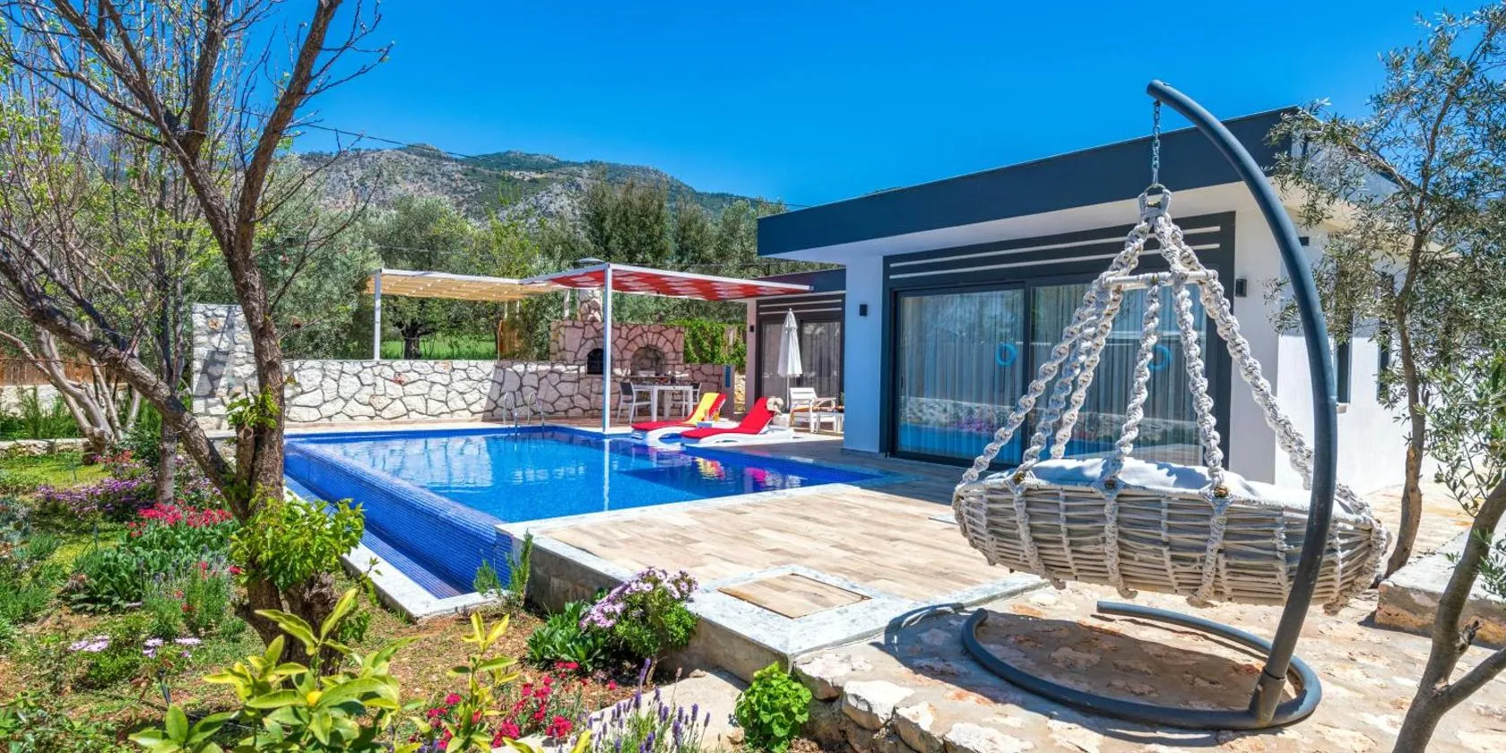 Villa Grando 1, que tiene piscina al aire libre, jardín y salón de uso común, dispone de alojamiento en Kaş con wifi gratis y vistas a la montaña.