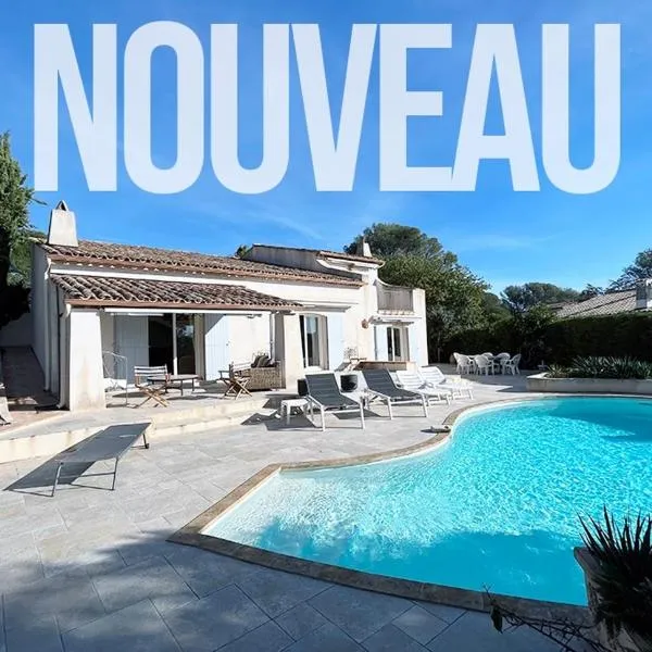 Villa 4 pièces à Fréjus Plage 5 min plage, clim, parking & BBQ, a property with barbecue facilities, is situated in Fréjus, 1.1 km from Saint-Raphaël Valescure Train Station, 36 km from Chateau de...