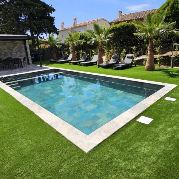 Villa Golf Azur heeft een seizoensgebonden buitenzwembad, een tuin, een terras, en biedt accommodatie in Saint-Raphaël met gratis WiFi en uitzicht op het zwembad.