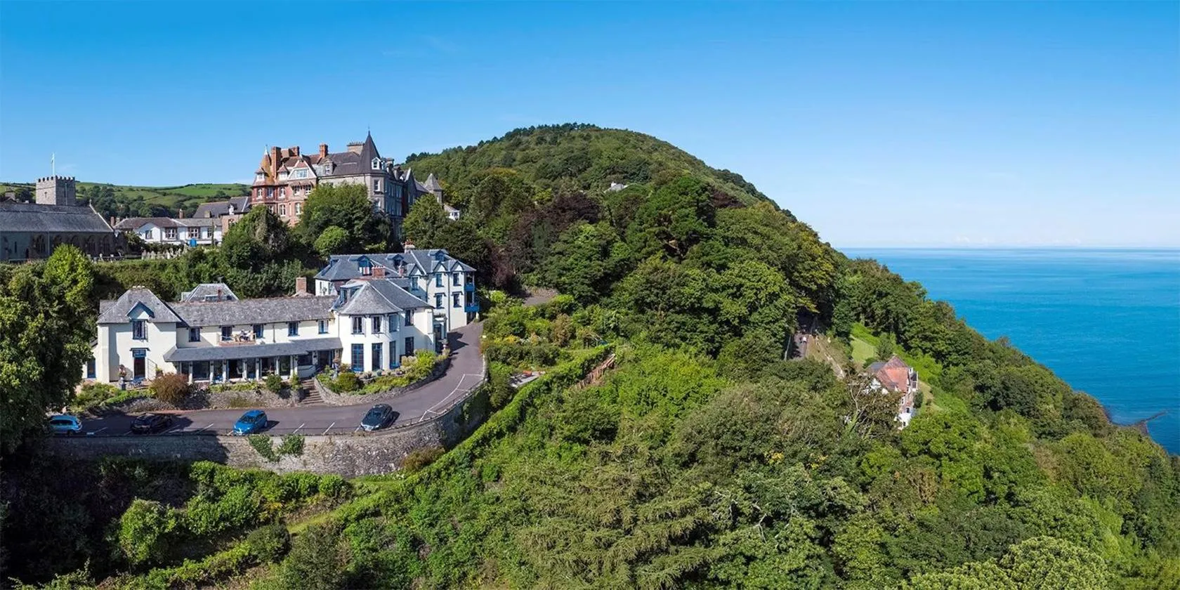 El The North Cliff Hotel ofrece vistas espectaculares a la costa norte de Devon desde la localidad de Lynton, situada en lo alto de una colina, a unos 150 metros de la orilla.