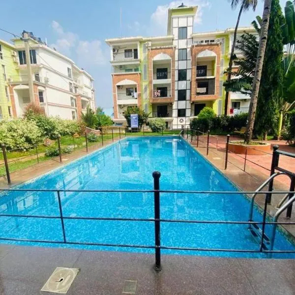 アーポラにあるBlueberry Comfort stay 2BHK Luxury Aptは、庭の景色を望むユニット(無料WiFi利用可)、屋外プール、テラスを提供しています。このアパートメントでは、専用プール、庭、無料専用駐車場を提供しています。 ベッドルームが2室あるアパートメントで、薄型テレビ、エアコン、リビングルームが備わります。ユニットにはキッチンが備わります。