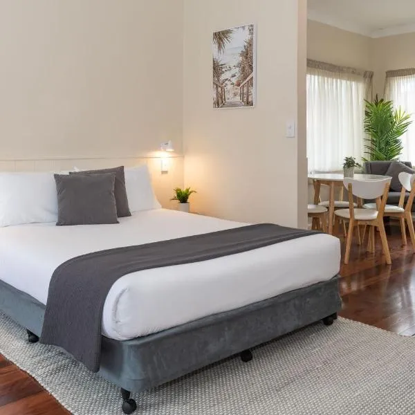 Tuncurry Motor Lodge ligt op slechts 10 minuten lopen van het strand en biedt zelfstandige accommodatie met gratis WiFi en een patio. U kunt gebruikmaken van een buitenzwembad en barbecuefaciliteiten.