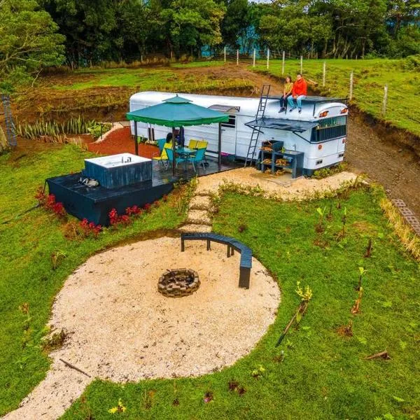 Bus Hotel with HotTube in the middle of mountain, que cuenta con bañera de hidromasaje, está en Sarchí.
