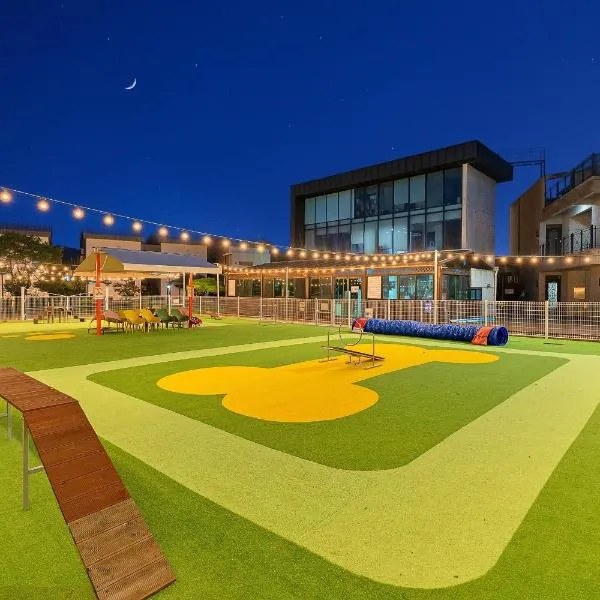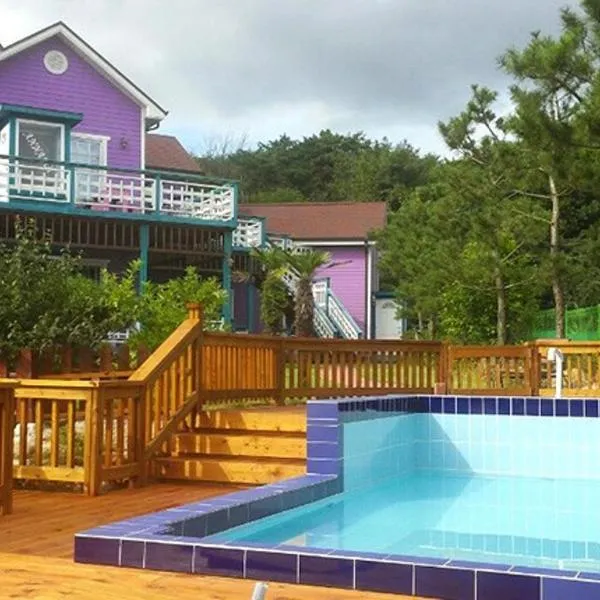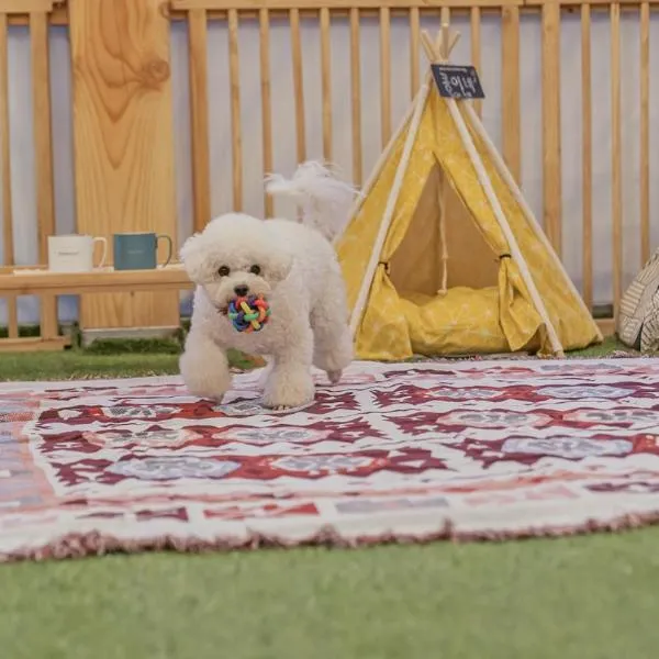 gyeongju planb pet pensionは慶州市にある宿泊施設で、屋外プールを提供しています。敷地内の専用駐車場を提供しています。 すべてのユニットには専用バスルーム、エアコン、テレビ、冷蔵庫が備わります。 gyeongju planb pet pensionから慶州ワールドまで8km、石窟庵まで11kmです。蔚山空港まで23kmです。