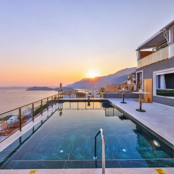 Dit particuliere hotel biedt uitzicht op de haven van Kas en de Middellandse Zee. Het beschikt over een buitenzwembad en een restaurant met dakterras en uitzicht op zee.