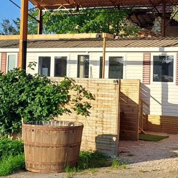 La Roulotte du Cagire - 4 pers - Pyrénées, que cuenta con vistas a la montaña, ofrece alojamiento con piscina de temporada al aire libre, jardín y terraza a unos 40 km de Gouffre d'Esparros.
