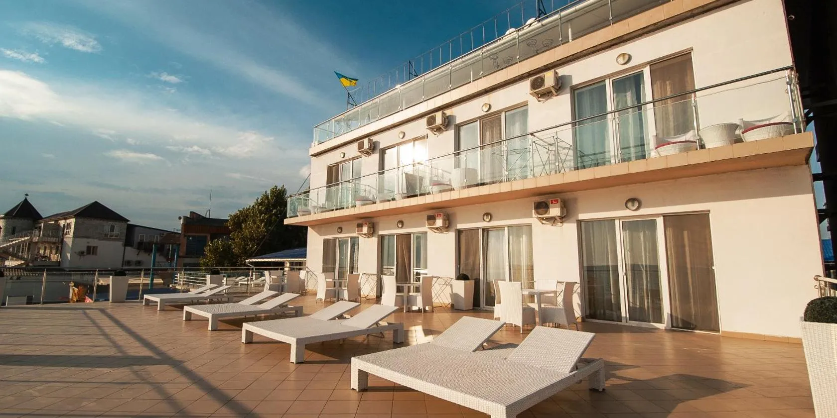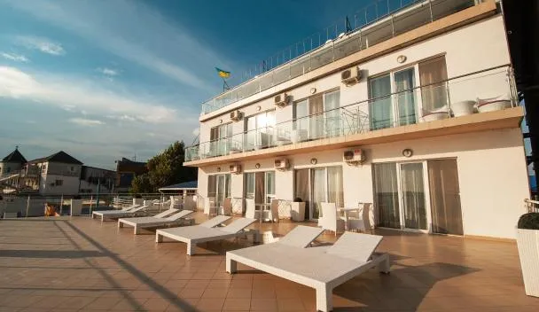 Directly on the beach in Koblevo, this hotel offers air-conditioned rooms and apartments with free Wi-Fi, a flat-screen TV and a balcony or terrace. Water sports equipment is available.