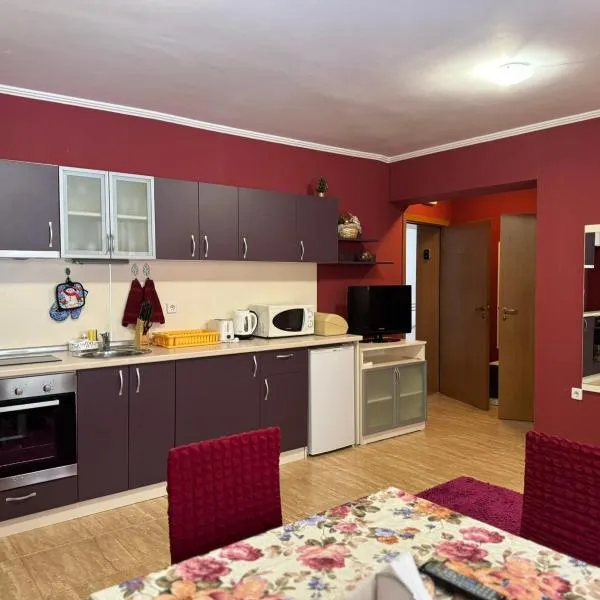 StoykiteにあるMarina apartmentは、パティオと無料WiFi付きのユニットを提供しています。このアパートメントから悪魔の喉洞窟まで42km、不思議な橋まで49kmです。 山の景色を望むテラス、ベッドルーム1室、リビングルーム、薄型テレビ、設備の整ったキッチン(冷蔵庫、オーブン付)、バスルーム(シャワー付)1室が備わるアパートメントです。