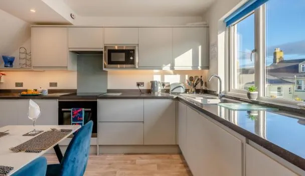 Large Three bed Two bathroom flat in Central Torquay está en el centro de Torquay, a 12 km de Hipódromo de Newton Abbot y a 37 km de Estadio de rugby Sandy Park, y ofrece wifi gratis.
