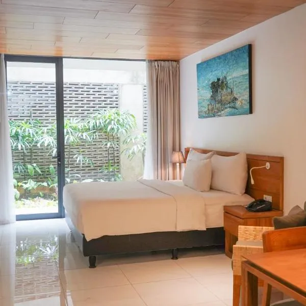 Apartemen Transpark by Lily's Room in Kalimanggis biedt accommodatie met uitzicht op de zee, een buitenzwembad, een tuin, een terras en een bar.