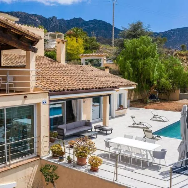 El Hotel Mas Lazuli, situado a las afueras de Pau, dispone de piscina exterior, solárium y comedor al aire libre.