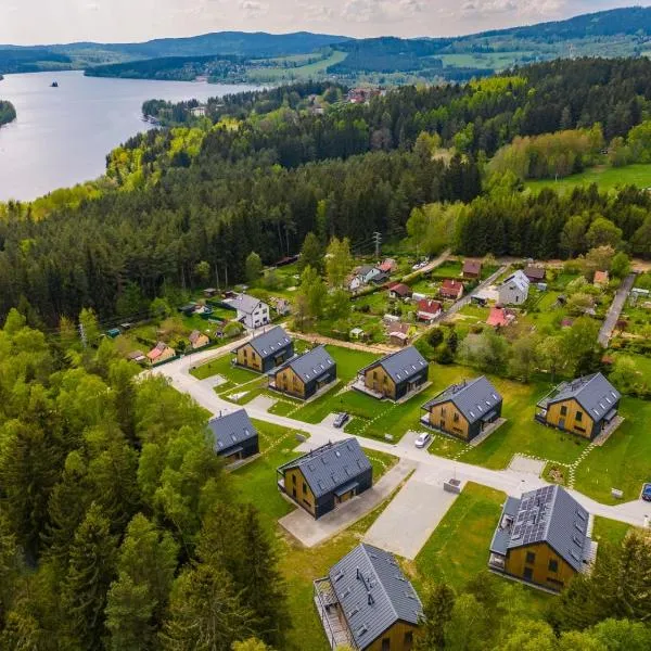Villapark apartments 201, Lipno heeft uitzicht op het meer, en biedt accommodatie met een balkon en een koffiezetapparaat, op 33 km van Kasteel van Český Krumlov.
