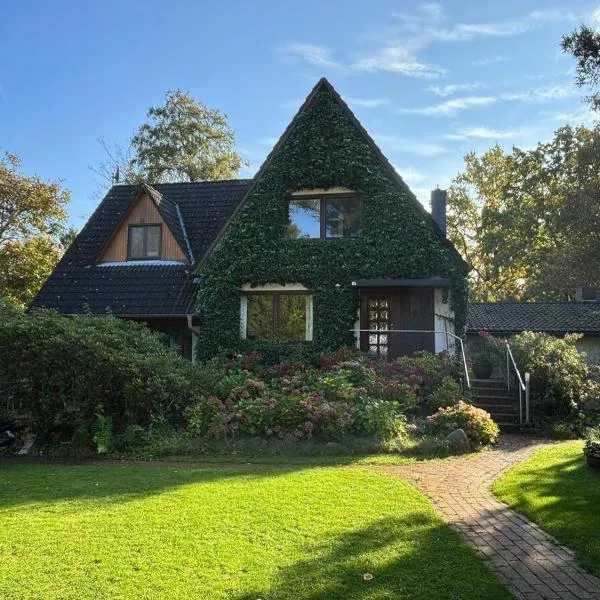 ハンブルクにあるSommerhaus in den Walddörfernはハンブルク中央駅から17kmで、パティオ、庭、無料WiFiを提供しています。この別荘には無料専用駐車場があり、周辺エリアではハイキングやサイクリングなどのアクティビティを楽しめます。