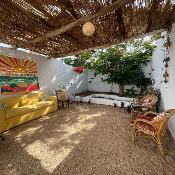 ダハブビーチからわずか徒歩5分のHaven Hideaway - Biet Moussa - بيت موسيはダハブにある宿泊施設で、庭、テラス、無料WiFiを提供しています。 ベッドルーム1室、リビングルーム、設備の整ったキッチン(冷蔵庫、ポット付)、バスルーム(シャワー、バスタブ付)1室が備わるエアコン付きの別荘です。 シャルム・エル・シェイク国際空港まで92kmです。