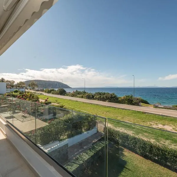 ポセイドン神殿からわずか12kmのBlue Paradise Seaview villa with private poolはスーニオのビーチフロントにある宿泊施設で、屋外プール、庭、専用ビーチエリア、無料WiFiを提供しています。このヴィラでは、バルコニーが備わるエアコン付きのユニットを提供しています。