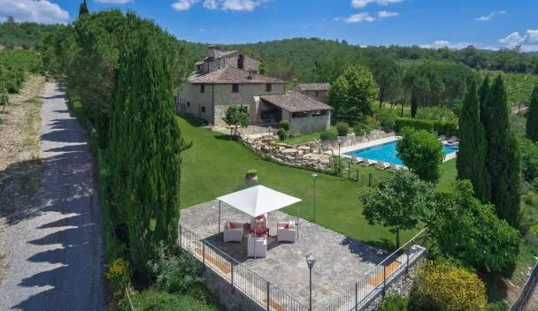 庭の景色を望むIl Fico in Chiantiはバルコニーとコーヒーメーカー付きのユニットを提供しており、マッテオッティ広場まで約23kmです。この別荘では、庭、バーベキュー施設、無料WiFi、無料専用駐車場を提供しています。 プールの景色を望むテラスのある別荘で、ベッドルーム3室、リビングルーム、衛星薄型テレビ、設備の整ったキッチン、バスルーム(ビデ、シャワー付)3室が備わります。